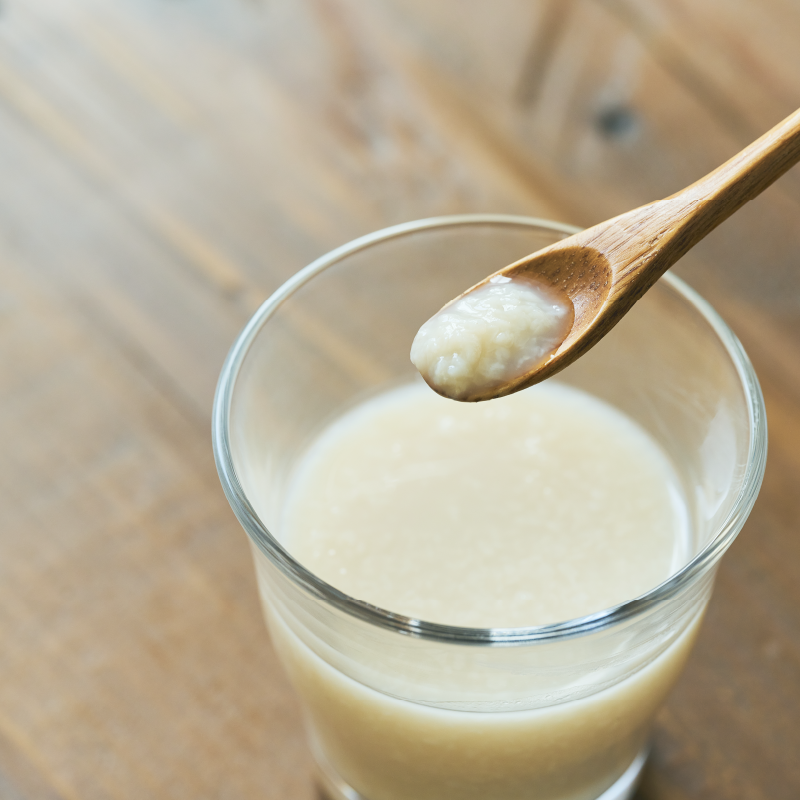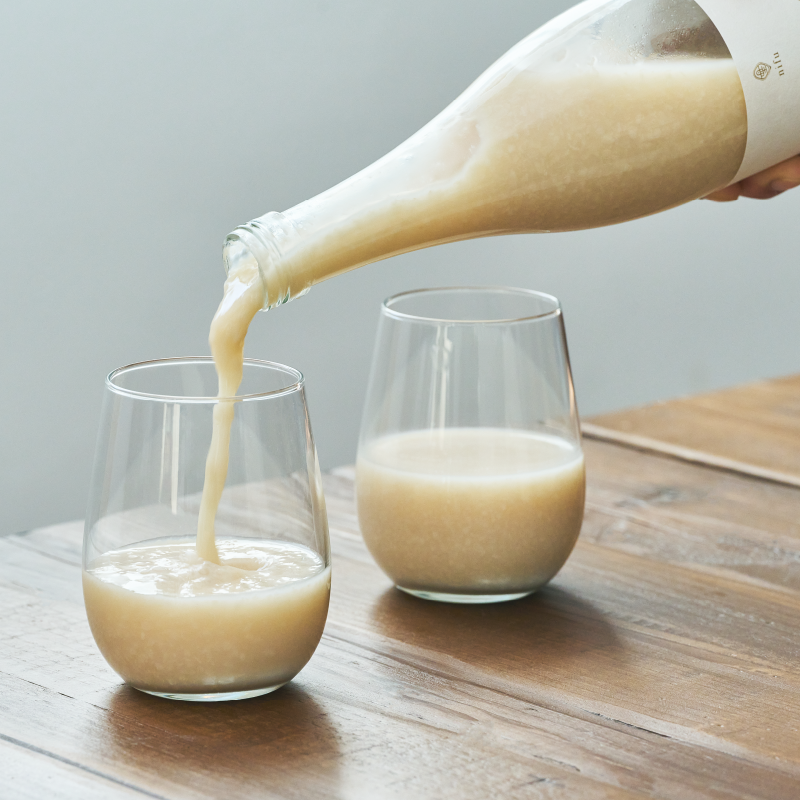 豆乳や牛乳を、甘酒と1:1の割合で割ってもおいしい。